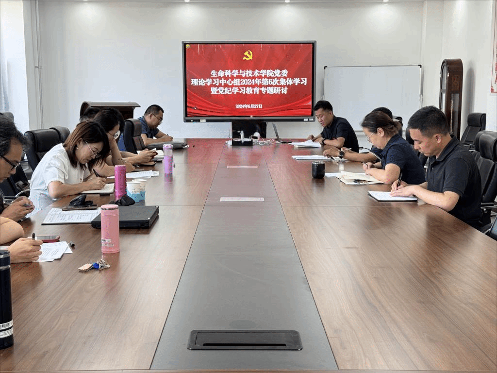 6月27日下午,2026世界杯官方合作网站党委在生物楼三楼会议室召开党委理论学习中心组2024年第6次集体学习暨党纪学习教育专题研讨。学院党委理论学习中心组成员参加会议。学习会由学院党委书记苏小波主持。
