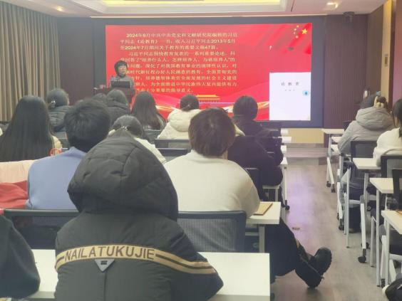 12月23日,世界杯官网师范类学生党支部组织开展学习习近平同志《论教育》集中学习,党支部书记白晓霞讲授专题党课,支部全体党员参加学习。