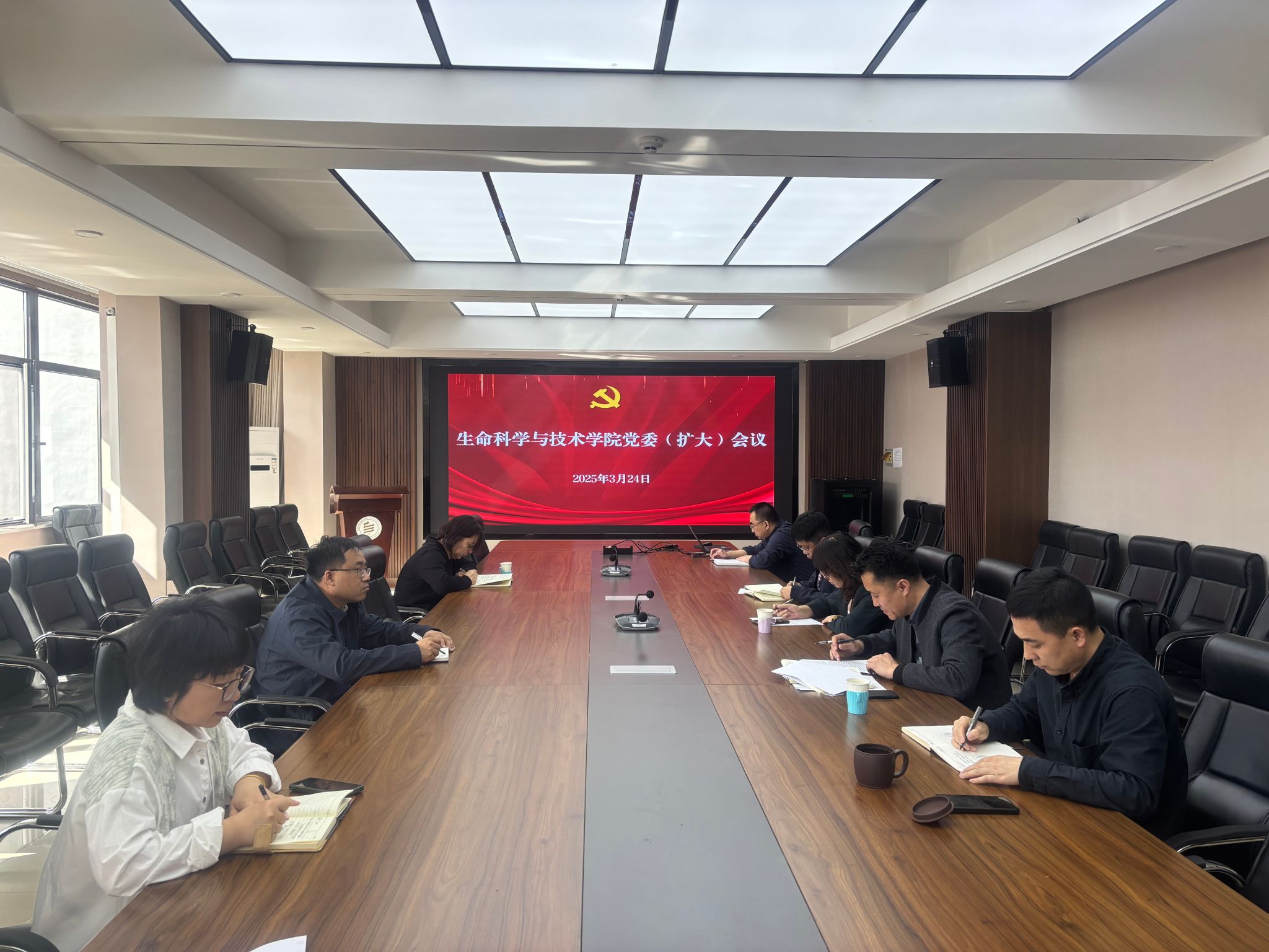 3月24日上午,学院在生物楼三楼会议室召开党委(扩大)会议暨深入贯彻中央八项规定精神学习教育启动会。学院领导班子成员、党委委员、党支部书记、教师党员代表参加会议。会议由党委书记苏小波主持。