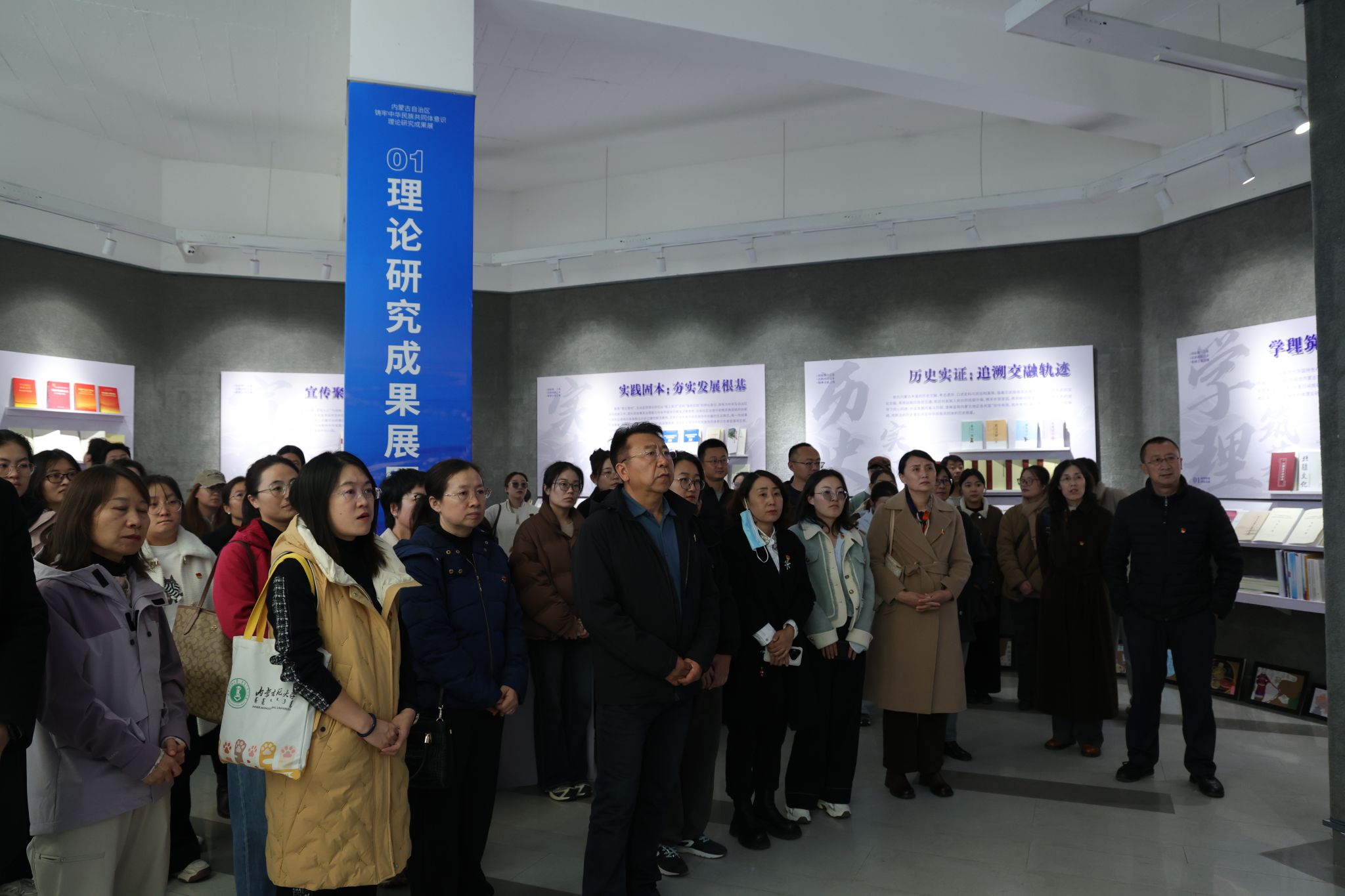 此次展览以“理论铸魂固根脉 实践赋能耀北疆”为主题,围绕“凝智探源·理润北疆”、“笃行践远·梦绽北疆”、“数智启航·魂耀北疆”三大板块,系统展示了自治区在铸牢中华民族共同体意识、推动民族团结进步事业过程中取得的理论创新成果和生动实践案例。展览全面呈现了内蒙古在新时代背景下,如何将铸牢中华民族共同体意识的理论成果转化为实践行动,为建设模范自治区、打造全国示范区提供了坚实的思想根基与学理支撑。