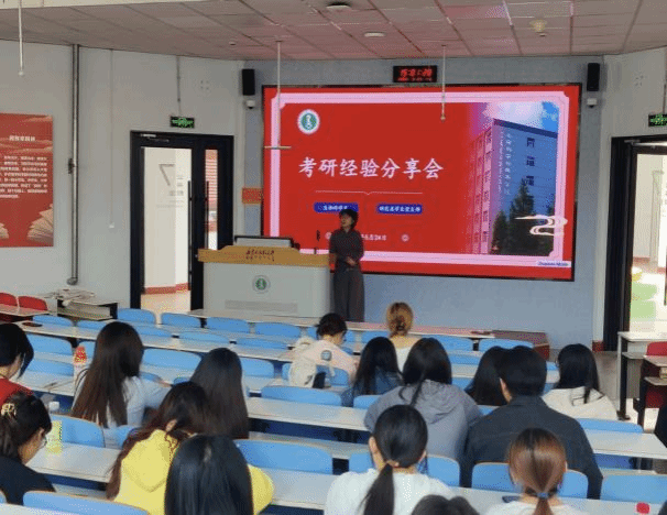 首先生物科学系主任姜凯老师和学院教务办负责人白晓霞老师为现场同学带来分享。姜凯老师提醒同学们做好心理准备,避免唯学校论,制定合理目标,根据自己的兴趣爱好,职业规划等做好考研准备;白晓霞老师建议同学们从当下规划大学四年,珍惜时光,为考研高质量就业早做准备。