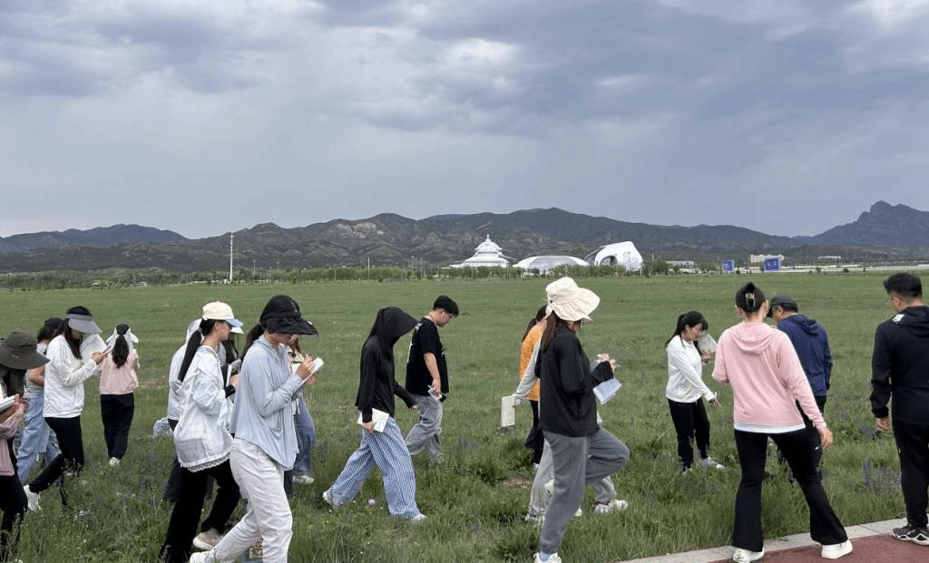 第三站是大青山呼和塔拉生态修复示范草原,同学们在老师的带领下,通过栈道穿过草原,并依次辨认草原内的建群种、优势种、亚优势种以及一些常见的植物。同学们通过本次实习见到了不同于锡林郭勒盟草原上的植物。