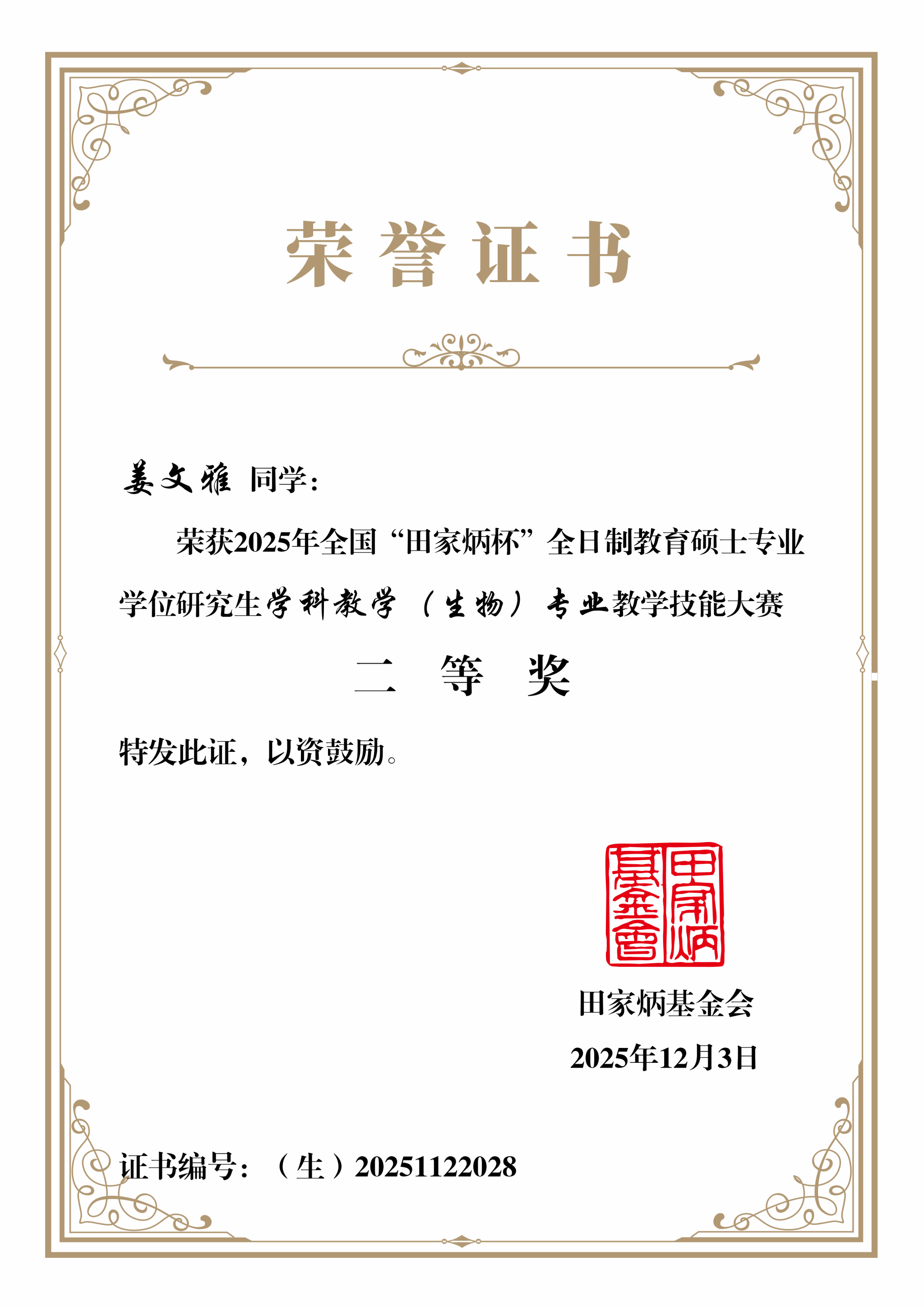 11月21日至23日,2025年全国“田家炳杯”全日制教育硕士专业学位研究生教学技能大赛在南京师范大学成功举办。作为我国教育硕士领域的重要赛事,本次大赛通过教学设计、模拟授课、现场答辩等环节,全面考察参赛选手的教学素养与综合能力。