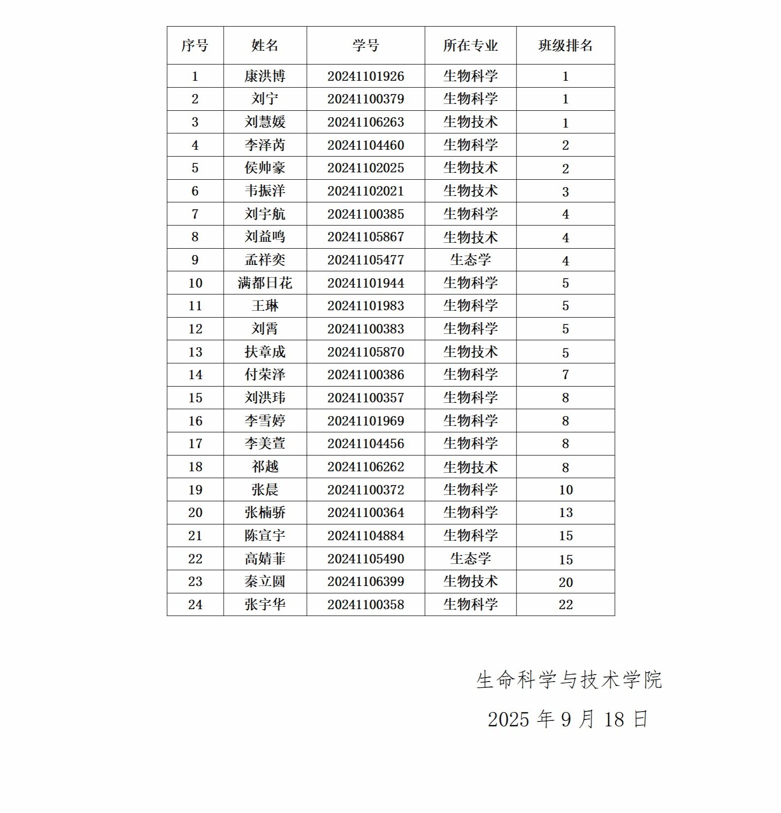 生物大数据分析与实践微专业2025年拟录取学生名单公示